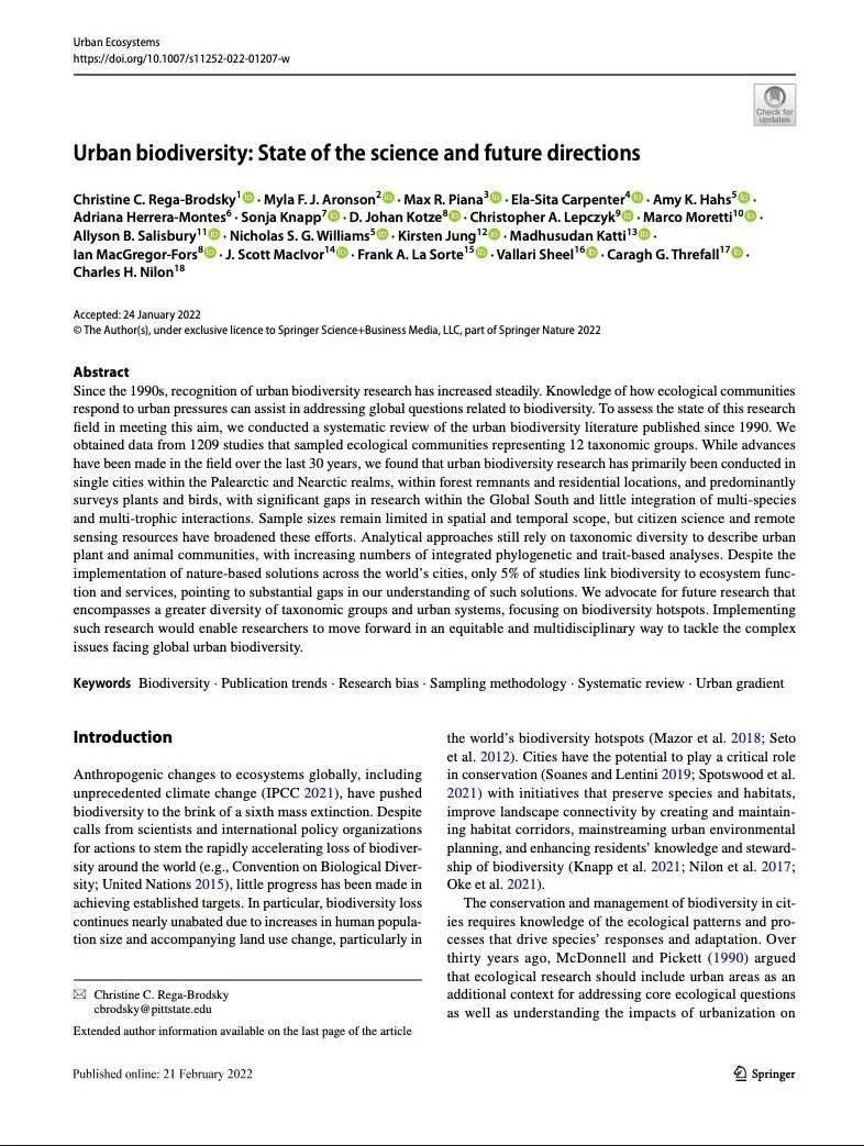 Urbanization GENERATES TRAIT SYNDROMES FOR ANIMAL TAXA WORLDWIDE (2023)
